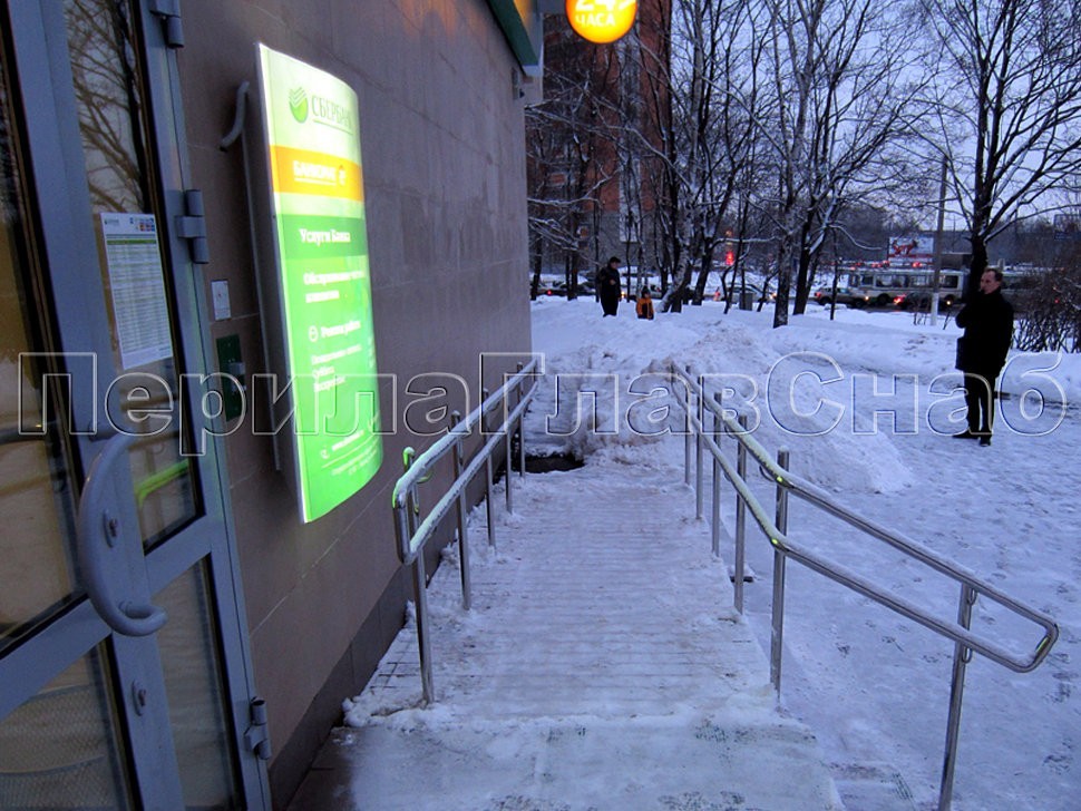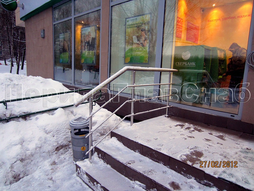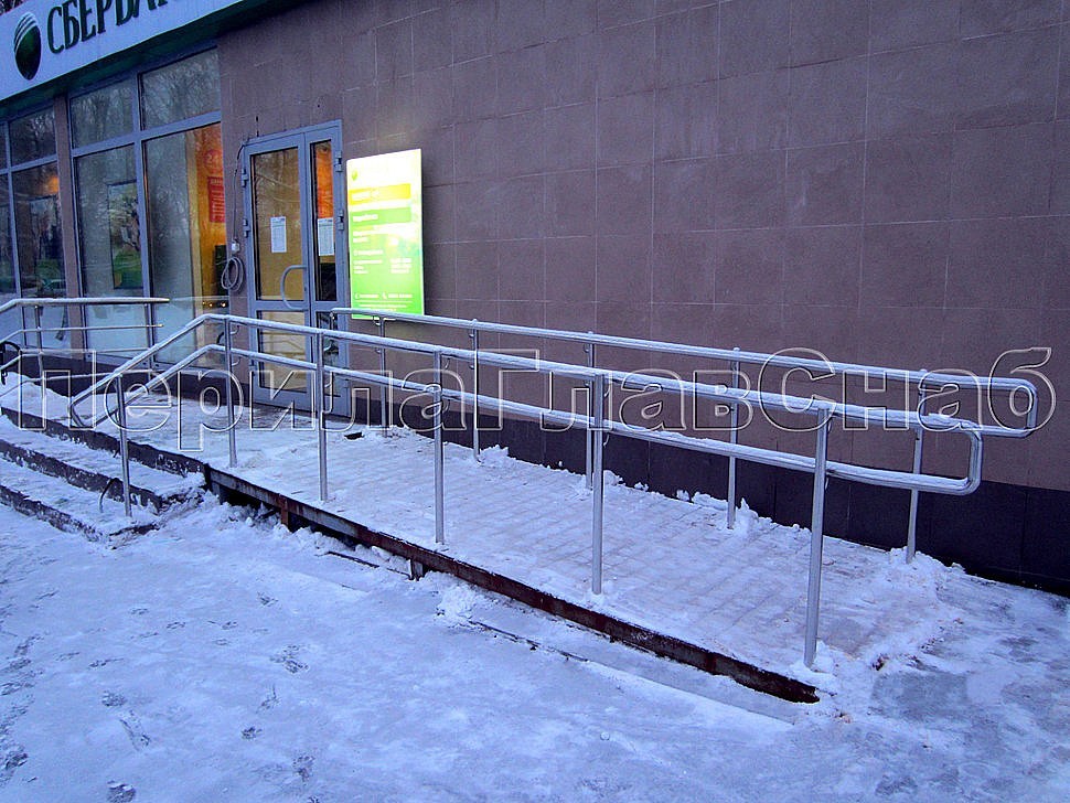 У входа в здание Сбербанка на ул. Липецкая был смонтирован комплекс из ограждений входной группы, пандуса для инвалидов и детского поручня от компании «ПерилаГлавСнаб».