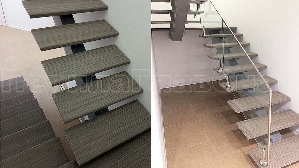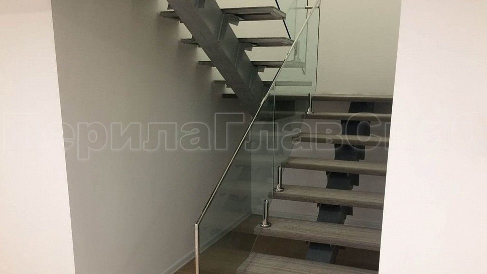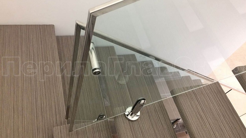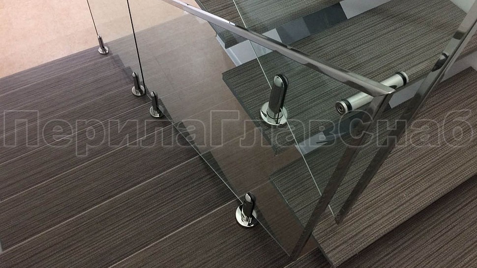 Меж-маршевые стекла соединены между собой точечным стеклодержателем, придающий конструкции большую устойчивость, и добавляющий больше гармоничности во внешнем виде ограждений.