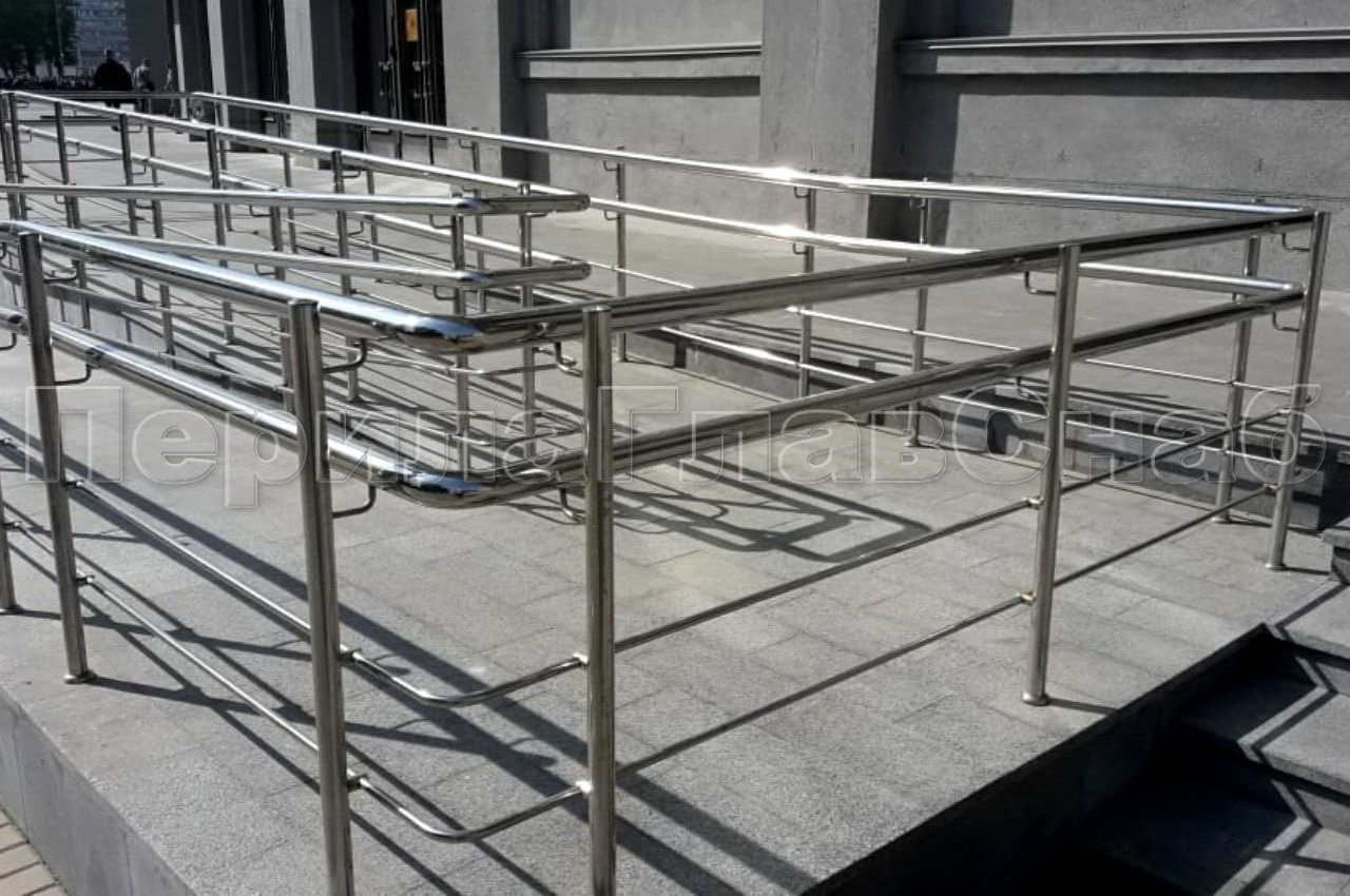 Для завершающего этапа сдачи объекта в эксплуатацию, необходимо было изготовить и смонтировать сто девяносто два метра ограждений пандуса для маломобильных групп из полированной нержавеющей стали и сорок метров трехригельных ограждений. Перед заказчиком стояли две основные задачи: