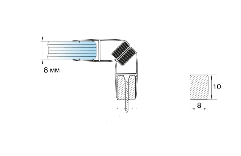 Уплотнитель для стекла 8мм, 90°, стекло-стекло 2,2 м.длина уса 25 мм t215y-8 купить в Челябинске