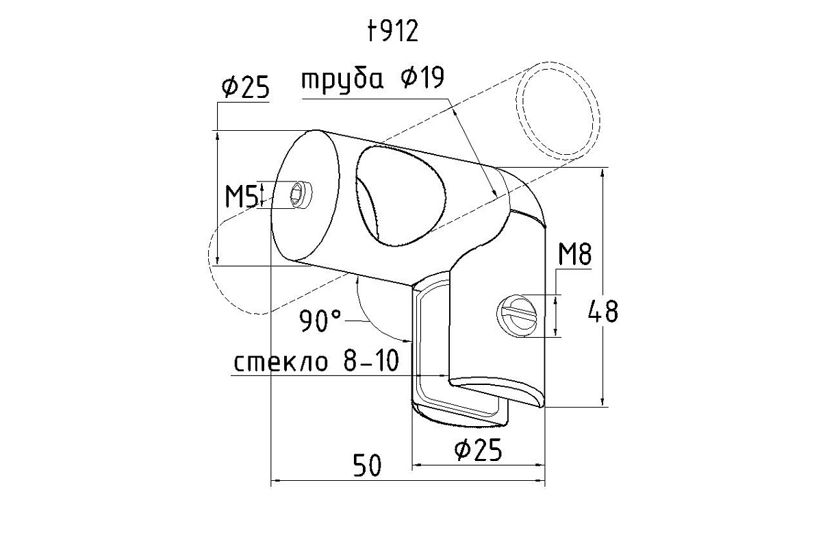 Держатель стекла сквозной боковой, для трубы 19 мм, полированный, t912 PSS