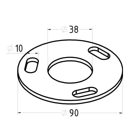 Фланец стойки 38/90 х 5 (4,3) х AISI 316 #200 3 отв х М10 х 20