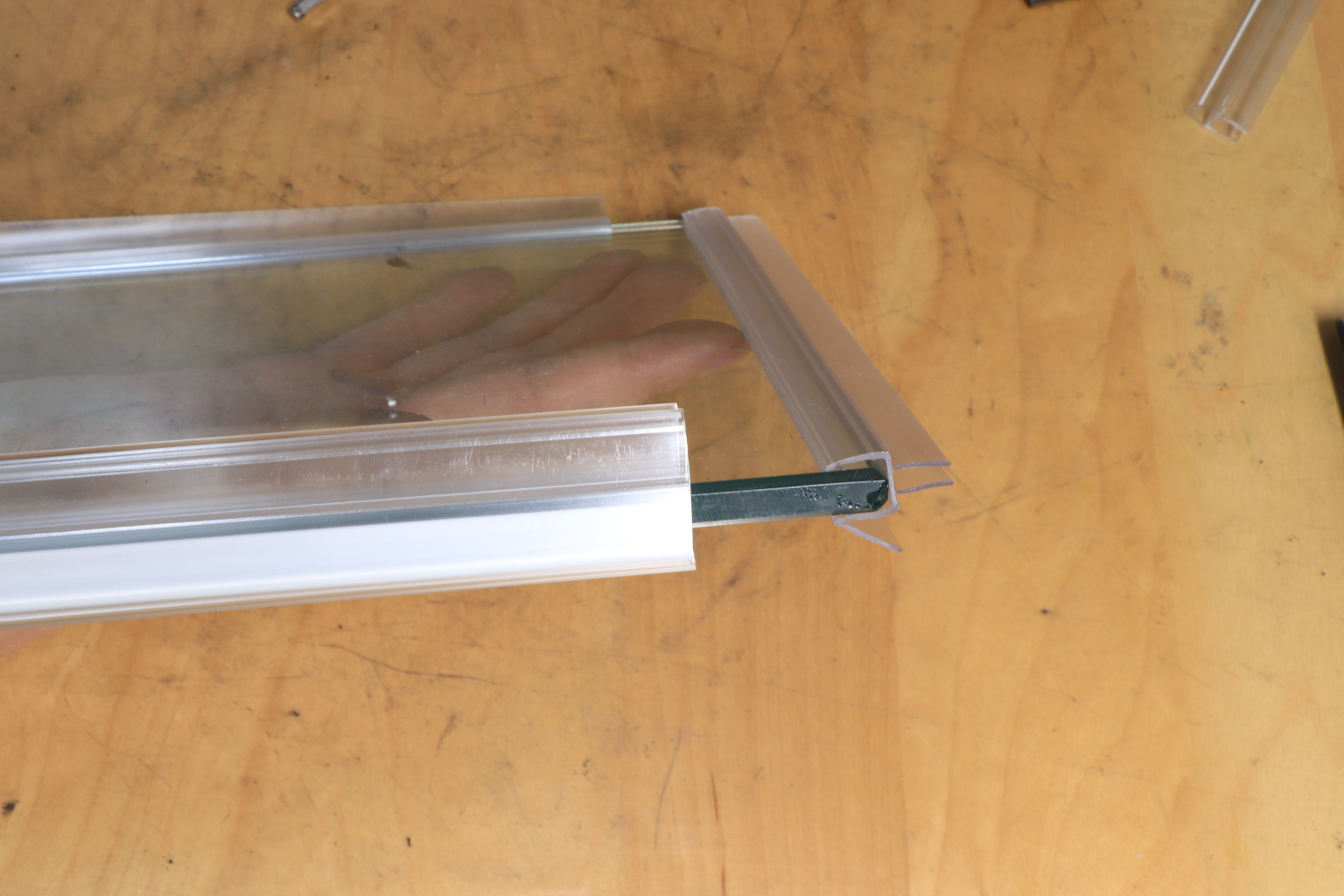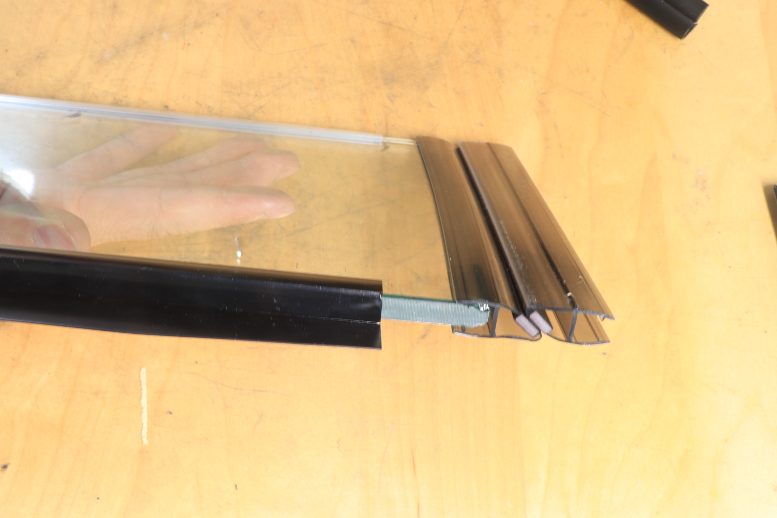 Монтируется по всему периметру стеклянного листа. Позволяет герметично соединять стеклянные панели между собой благодаря встроенному магниту. Толщина одного типоразмера составляет 1.5 мм, длина – 2200 мм.