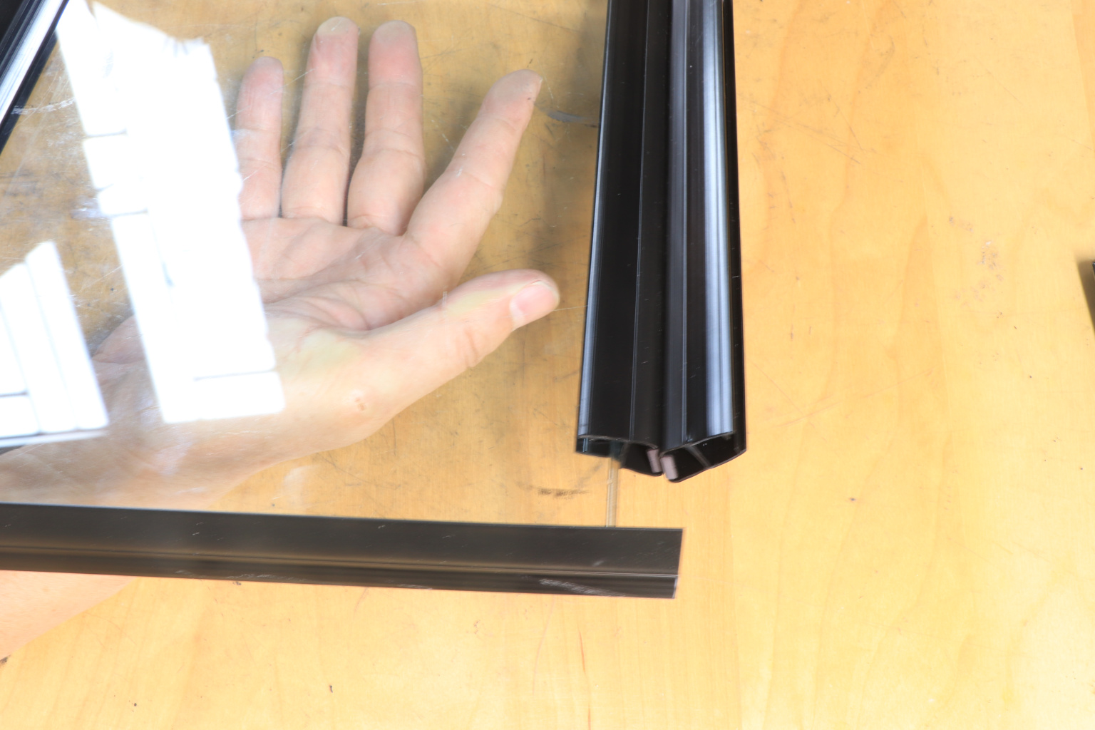 За счет своих свойств (стойкость к щелочам, минеральным маслам и многим кислотам) прекрасно подходит для крепления стеклянного листа по всему периметру. Применение этого комплекта гарантирует отсутствие течи в вертикальной части конструкции. Уплотнитель из комплекта применим в сочетании со стеклом толщиной до 8 мм и углом в плане до 135.