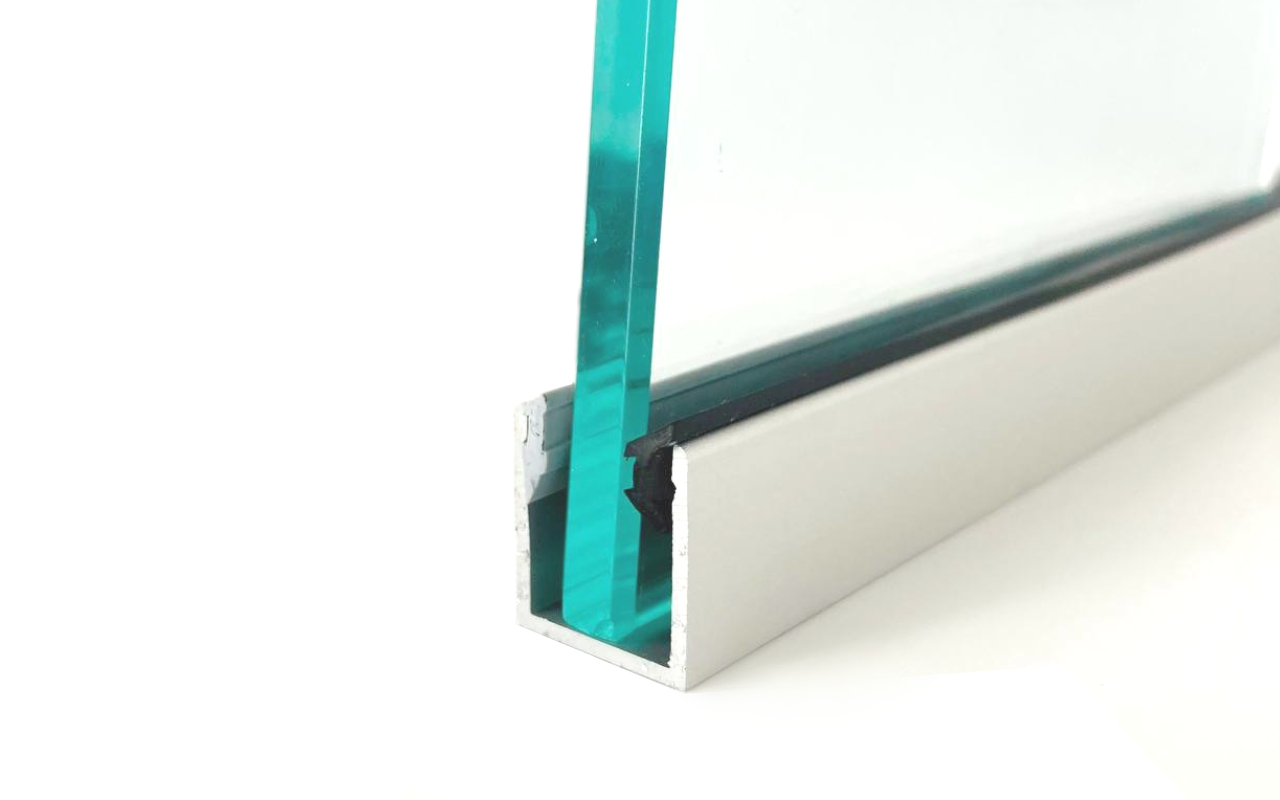 Нижний опорный профиль монтируется в пол на саморезы, затем в него устанавливается стекло. После этого по краям фиксируются уплотнительные резинки.