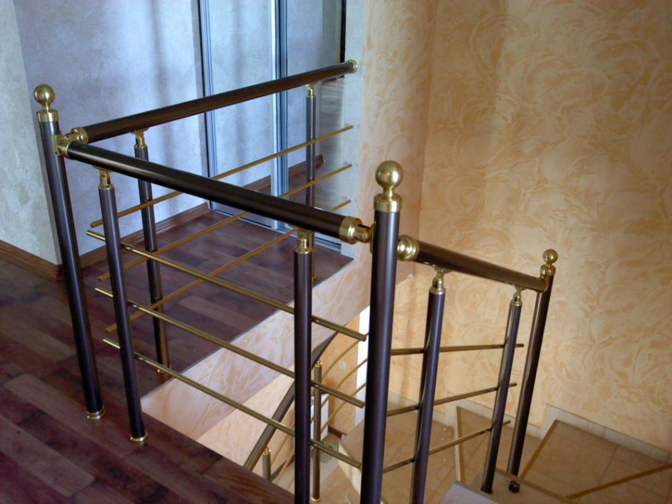 Лестничное ограждение с тремя ригелями и поручнем из латуни