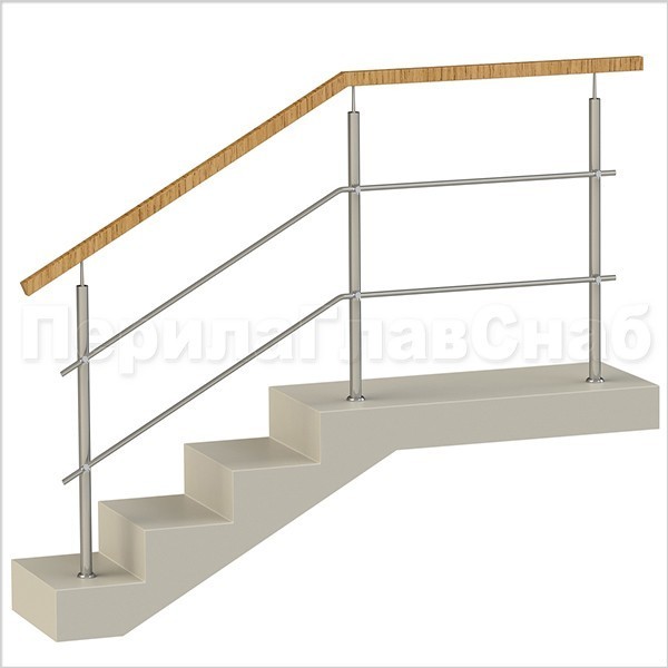 Два ригеля на держателях, квадратный деревянный поручень и круглые стойки