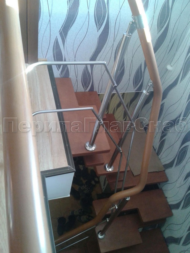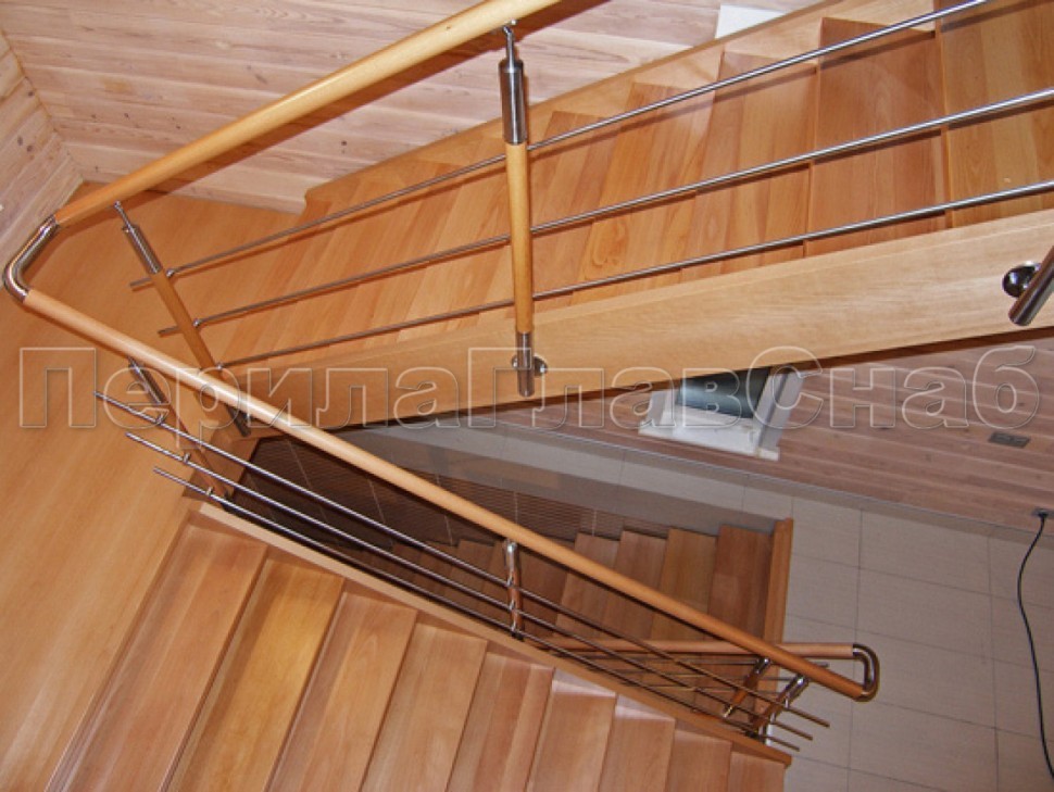 Ограждения с двумя стойками в каждую ступень с деревянным поручнем и без ригелей