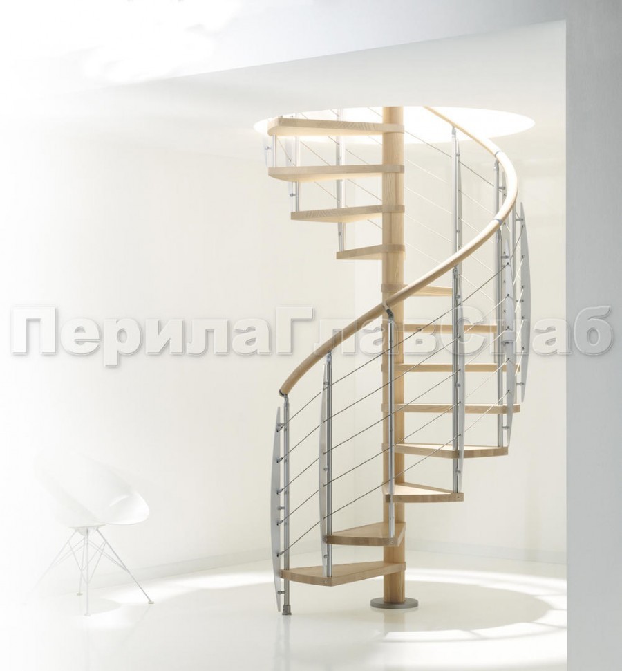 Ограждения со стойками в каждую ступень с круглым деревянным поручнем без ригелей