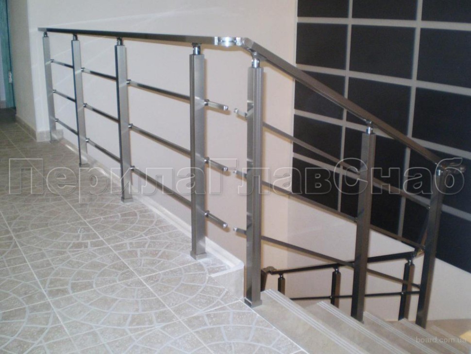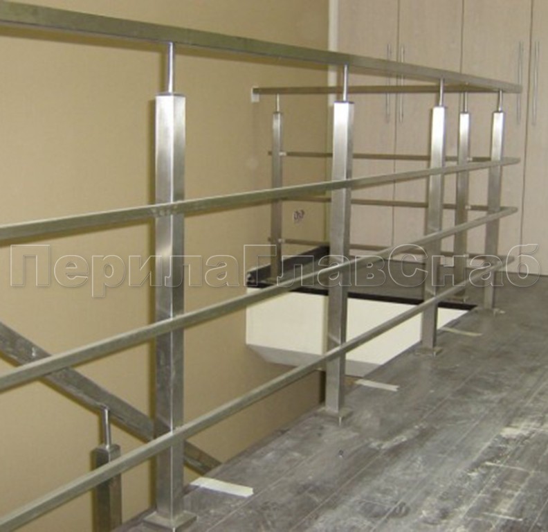 Ограждения с квадратным поручнем и дополнительным поручнем без ригелей