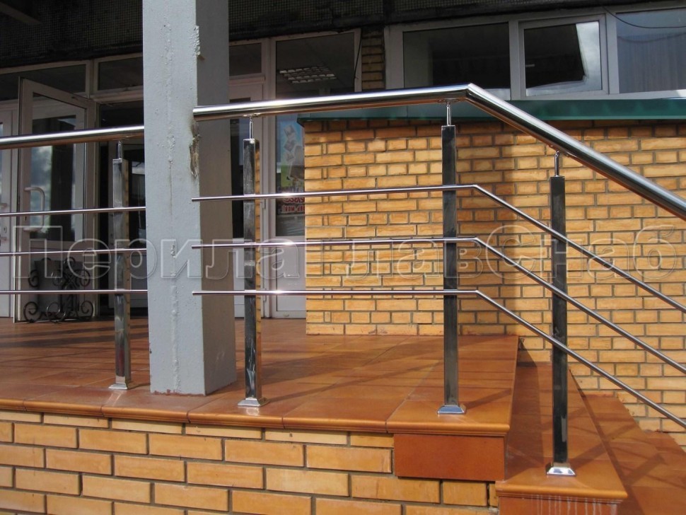 Четыре ригеля на сварке, круглый поручень и круглые стойки для крыльца