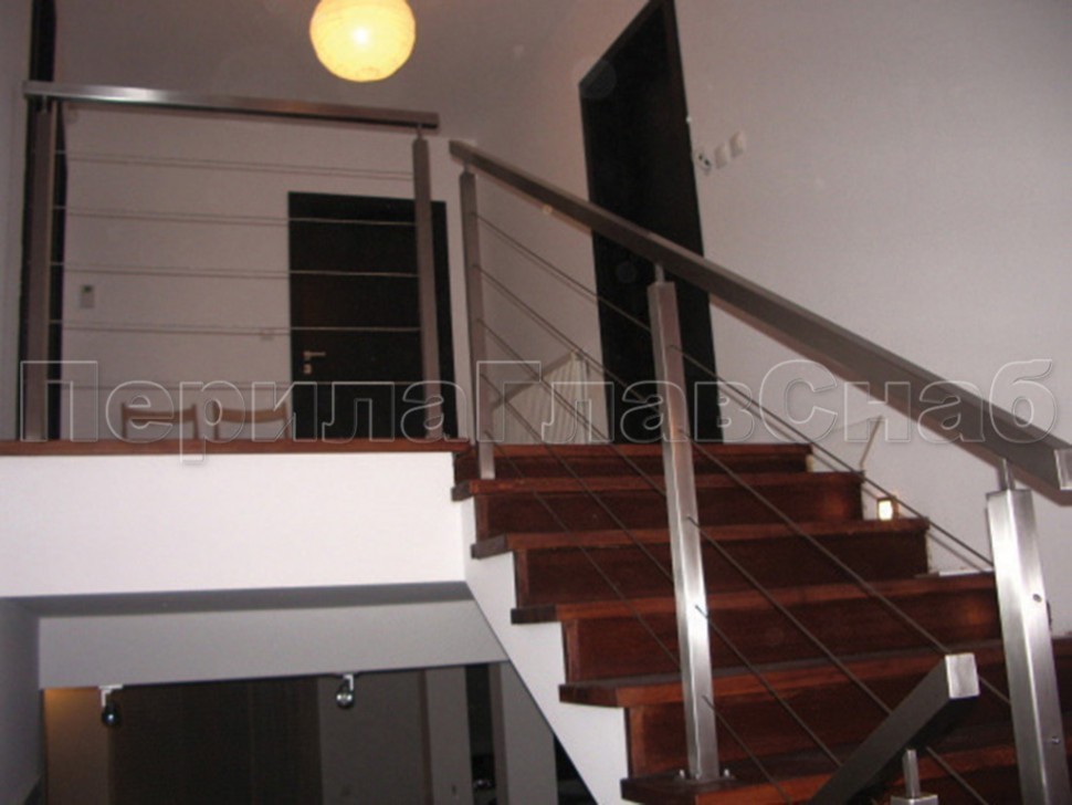 Ограждения из нержавейки. Заполнение из 3х тросиков. Квадратные стойки.