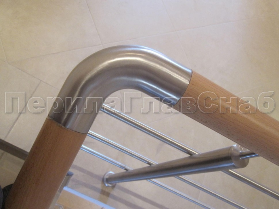 Нержавеющие ограждения без ригелей с круглым поручнем и стойками с деревянными вставками