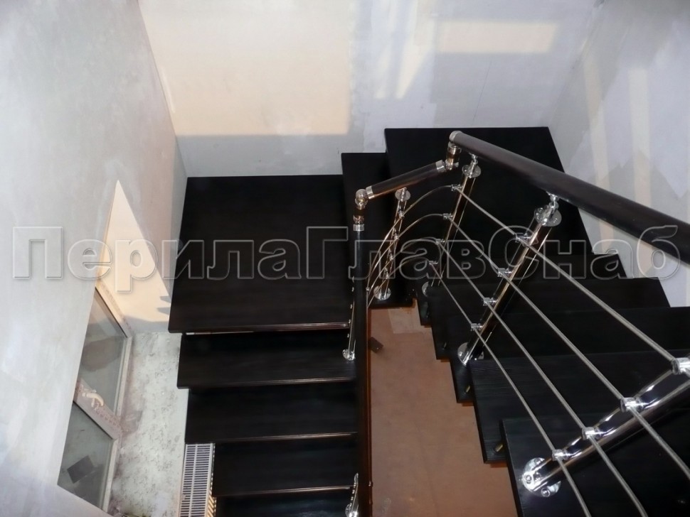 Ограждения с двумя стойками в каждую ступень с деревянным поручнем и без ригелей