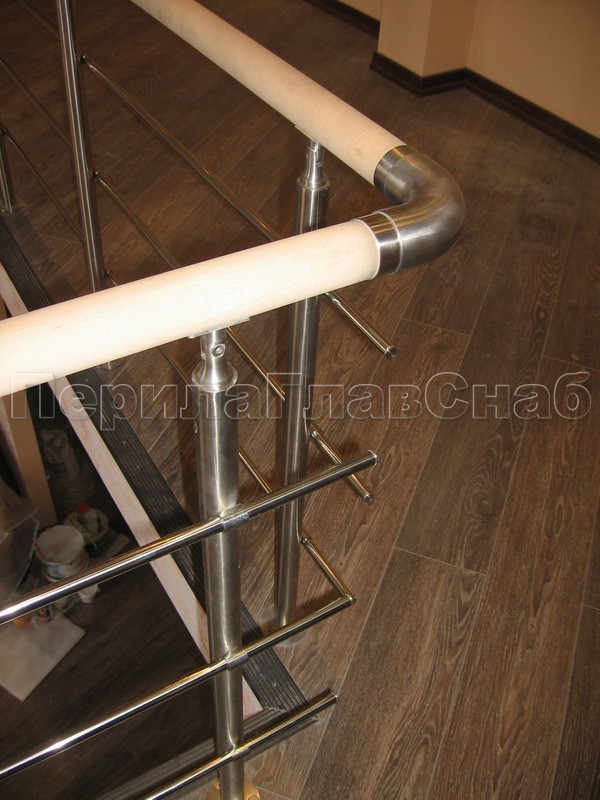 Нержавеющие ограждения без ригелей с круглым поручнем и стойками с деревянными вставками