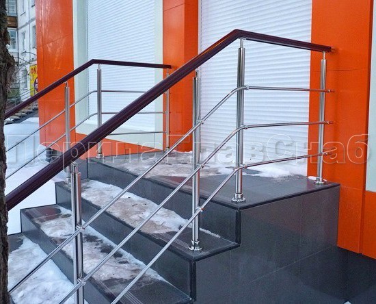 Четыре ригеля на сварке, круглый поручень и круглые стойки для крыльца