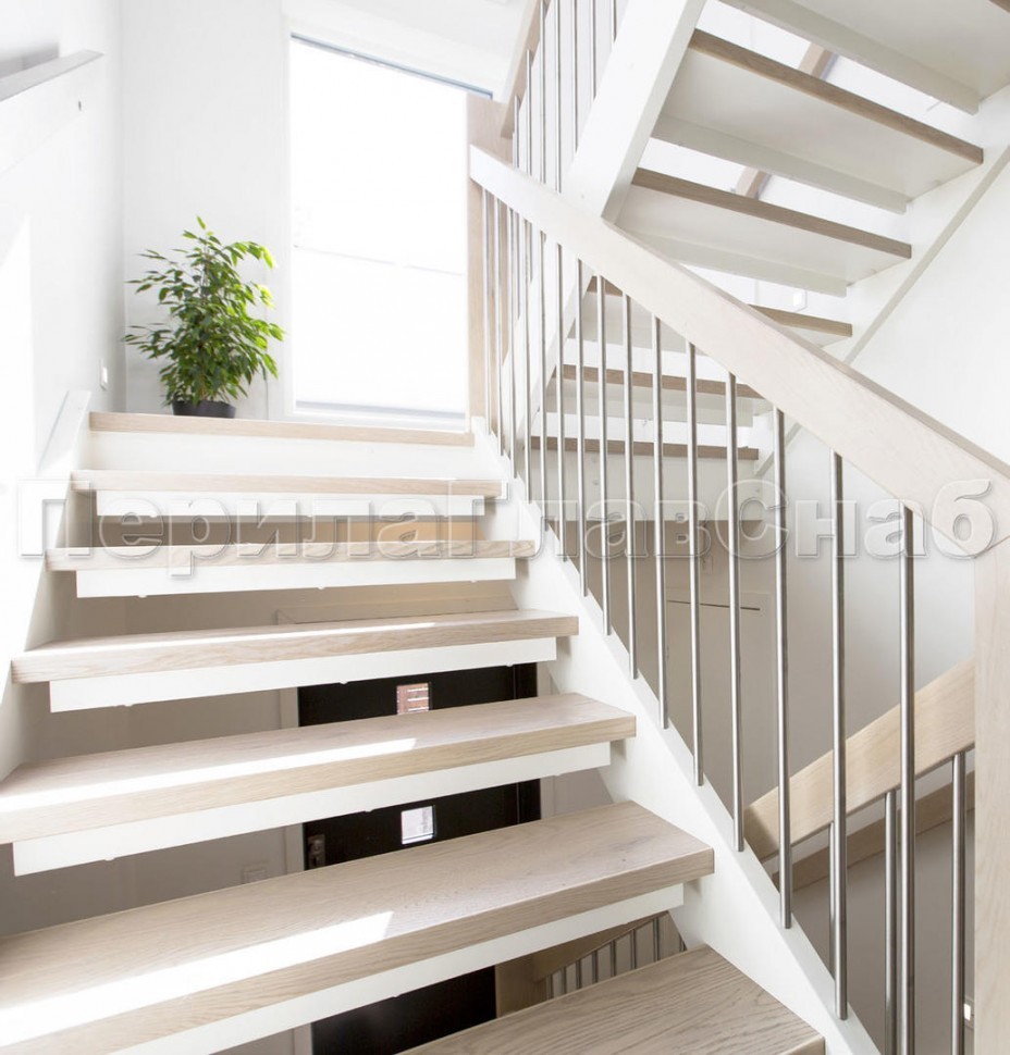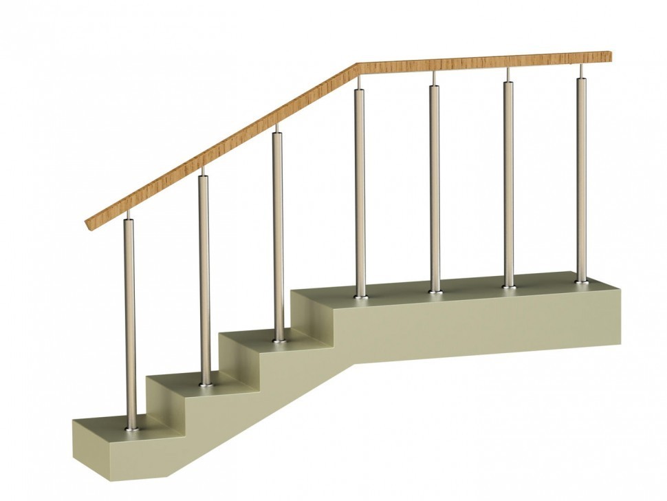 Ограждения с двумя стойками в каждую ступень с деревянным поручнем и без ригелей