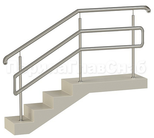 Два ригеля на держателях, круглый поручень и круглые стойки