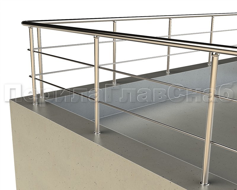 Четыре ригеля на сварке, круглый поручень и квадратные стойки