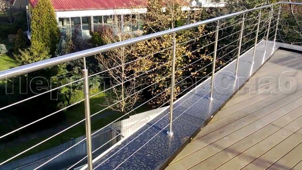 Ограждения из нержавейки. Заполнение из 7ми тросиков + декоративные наконечники