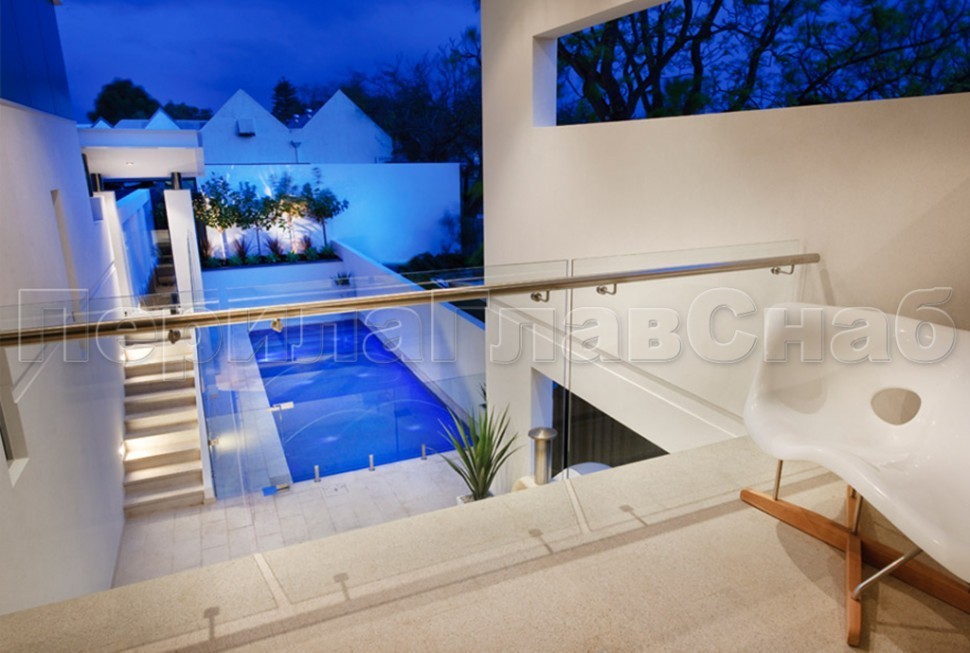 Стеклянные ограждения винтовой лестницы и баллюстрады