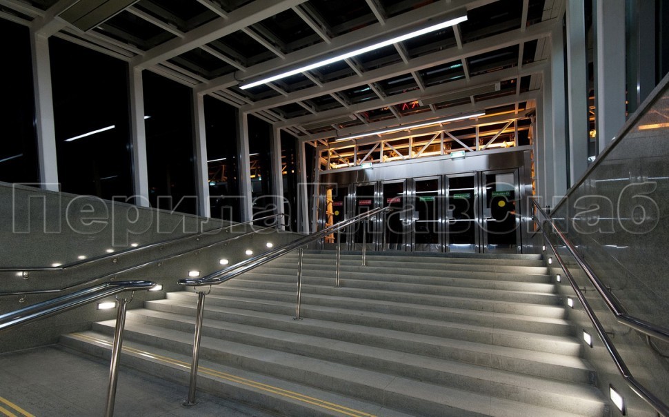 Нержавеющие ограждения для школ и детских садов с вертикальным заполнением “Частокол” - вариант №1 для крыльца