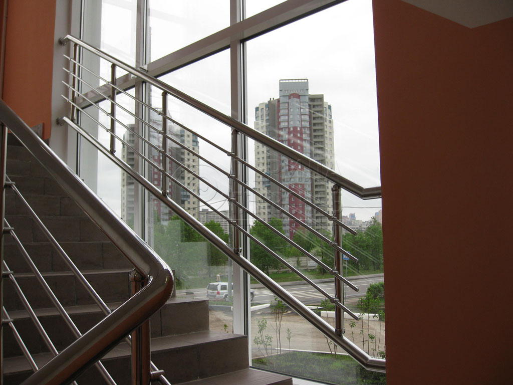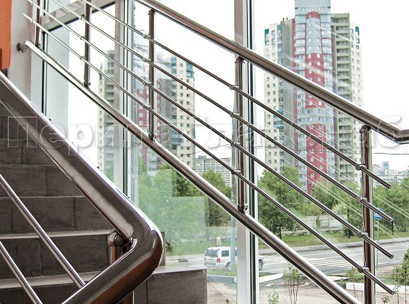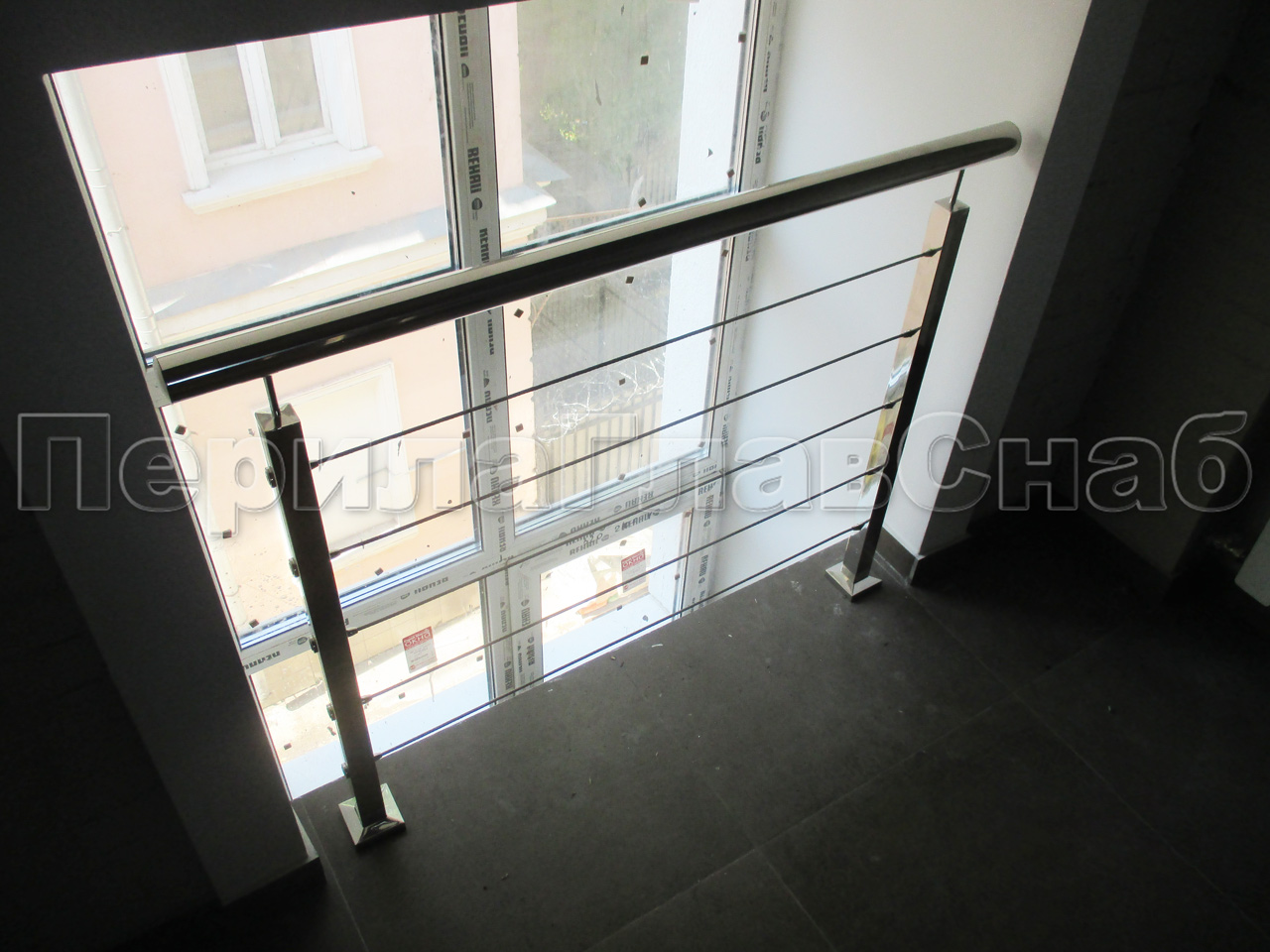 Межэтажное ограждение из нержавеющей стали с торцевым креплением для окон в Челябинске. Готовые проекты ПерилаГлавСнаб
