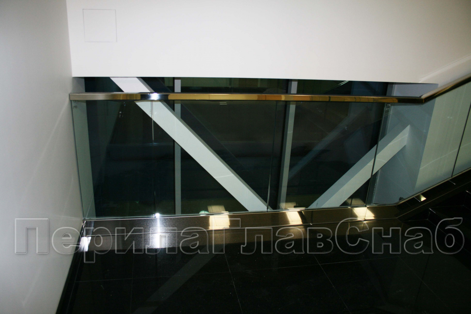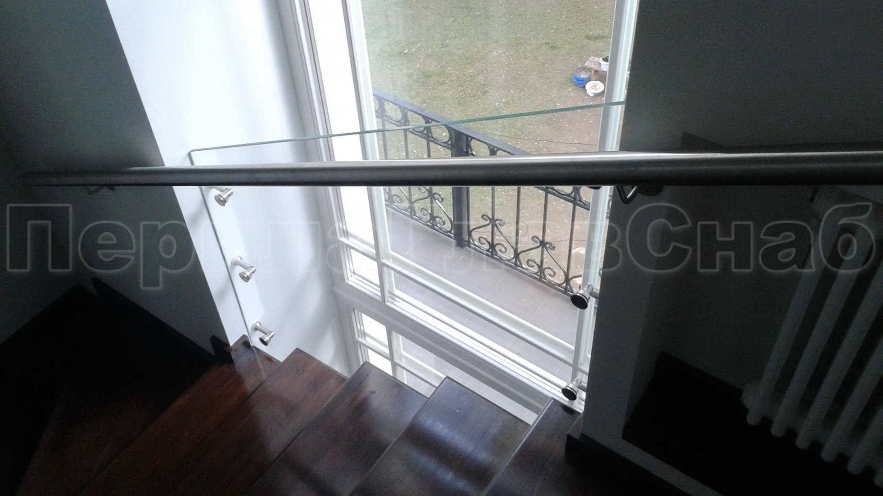 Ограждения со стеклом с крепление в пол окна на лестничной площадке в Челябинске. Готовые проекты ПерилаГлавСнаб - фото 1
