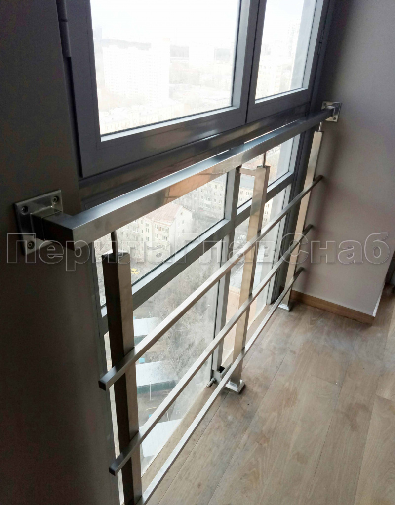 Межэтажное ограждение из нержавеющей стали с торцевым креплением для окон
