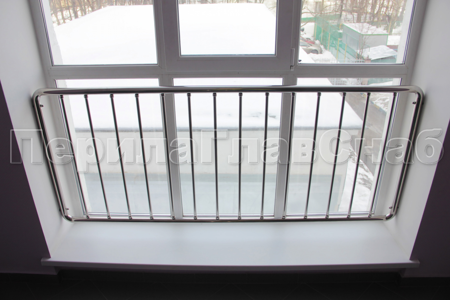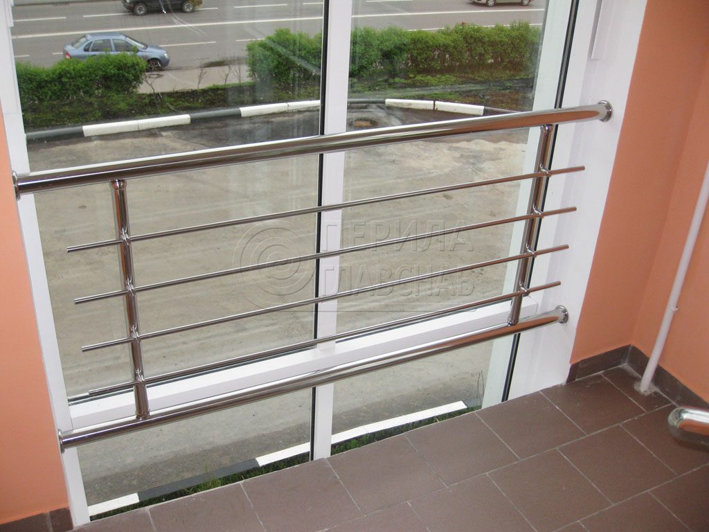 Ограждениие из нержавейки со стеклом для окон в Челябинске. Готовые проекты ПерилаГлавСнаб - фото 1