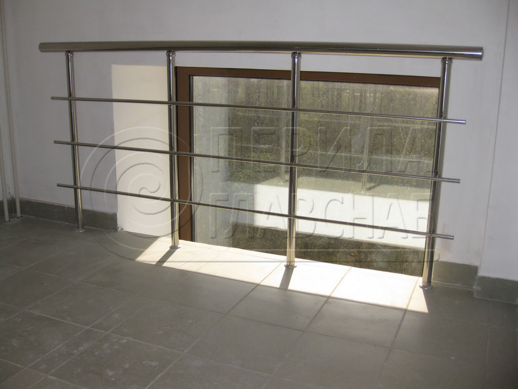 Ограждениие из нержавейки со стеклом для окон в Челябинске. Готовые проекты ПерилаГлавСнаб
