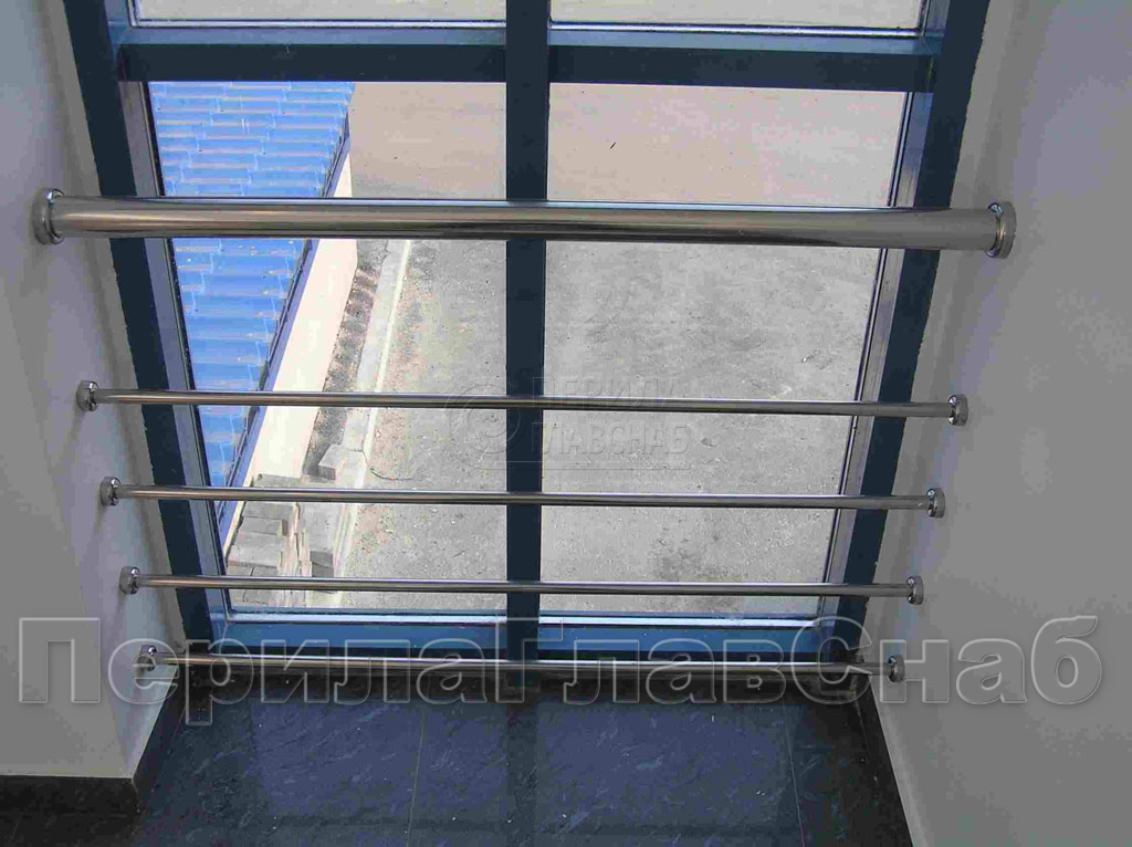 Ограждение на окнах из нержавещей трубы с ригелями в Челябинске. Готовые проекты ПерилаГлавСнаб
