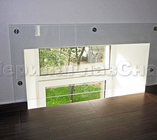Ограждения со стеклом с крепление в пол окна на лестничной площадке