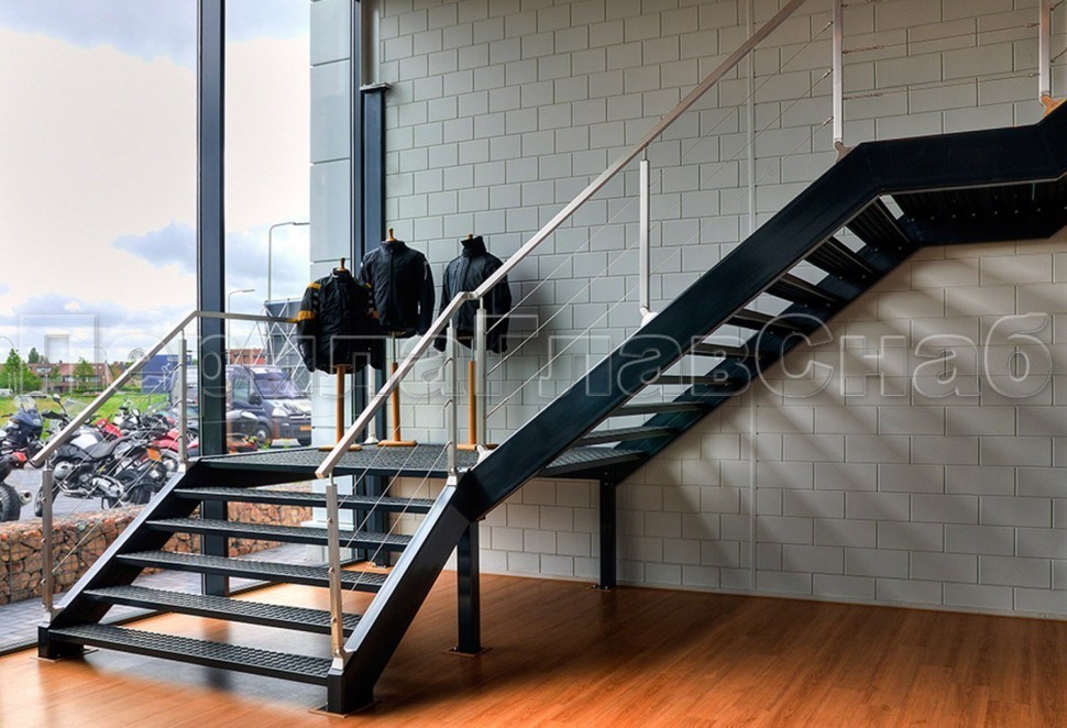Ограждения с квадратным поручнем со стойками в каждую ступень без ригелей