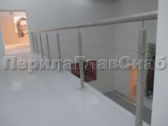 Ограждения из нержавейки. Заполнение из 3х тросиков. Квадратные стойки.