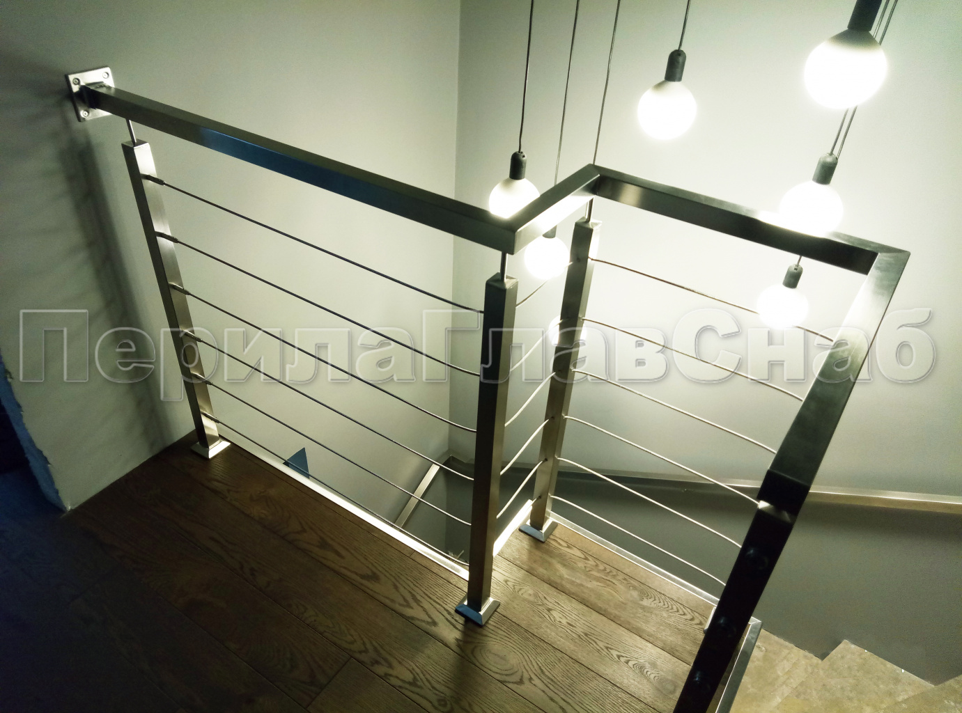 Ограждения из нержавейки. Заполнение из 2х тросиков. Квадратные стойки