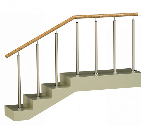Ограждения со стойками в каждую ступень с круглым деревянным поручнем без ригелей