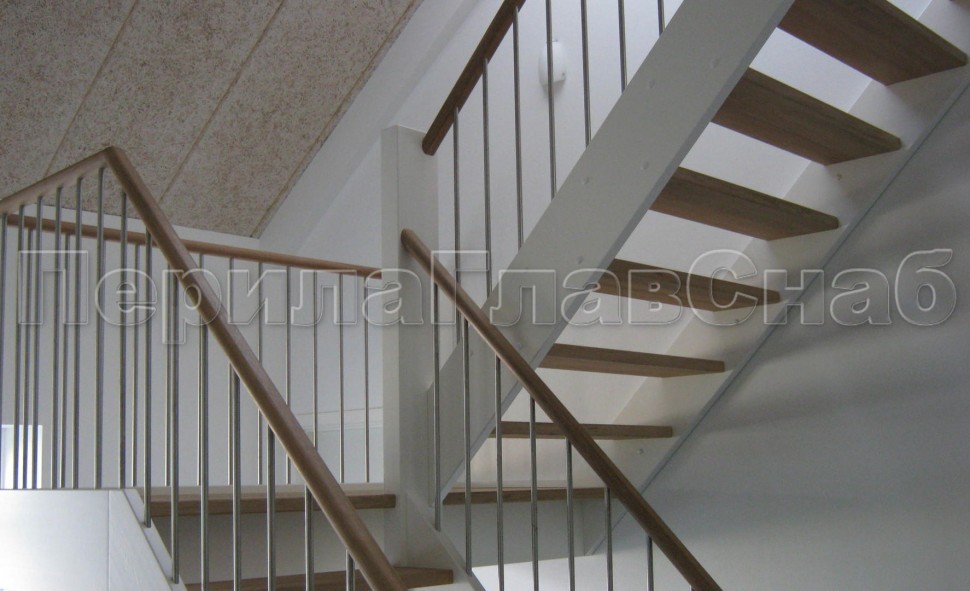 Ограждения с двумя стойками в каждую ступень с деревянным поручнем и без ригелей