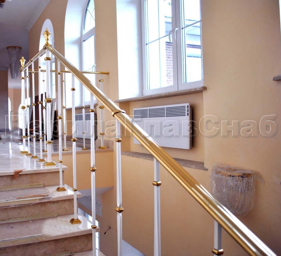 Лестничное ограждение с тремя ригелями и поручнем из латуни