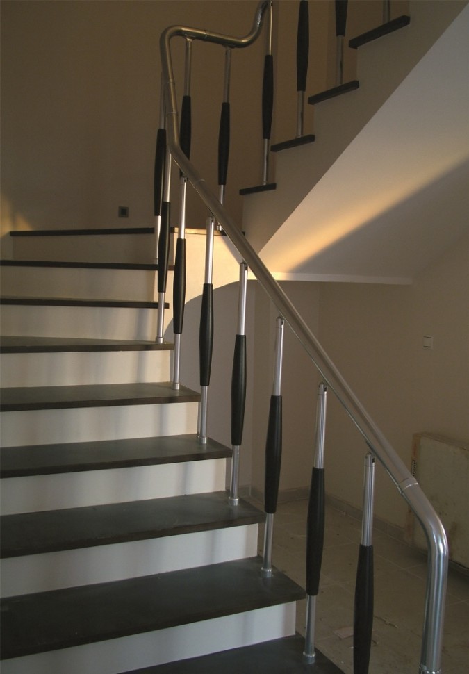 Ограждения с двумя стойками в каждую ступень с пластиковым поручнем и без ригелей
