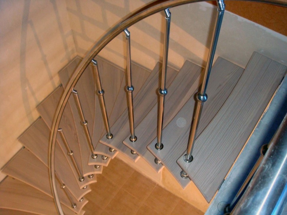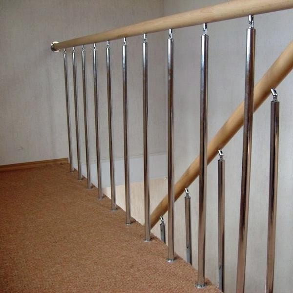 Нержавеющие ограждения без ригелей с круглым поручнем и стойками с деревянными вставками
