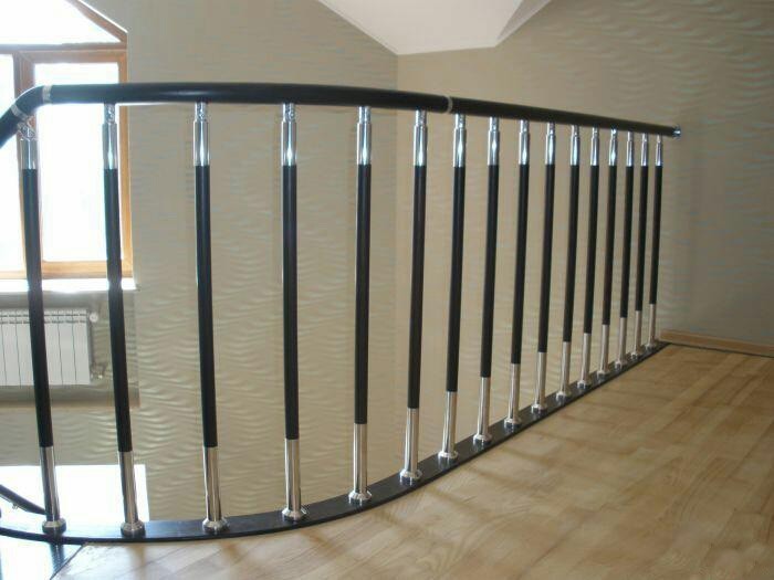 Четыре ригеля на сварке, квадратный поручень и круглые стойки