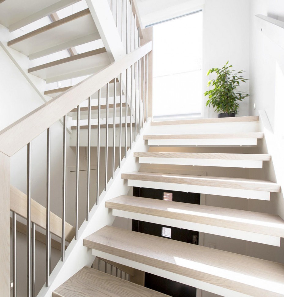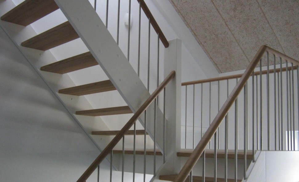 Ограждения с двумя стойками в каждую ступень с деревянным поручнем и без ригелей