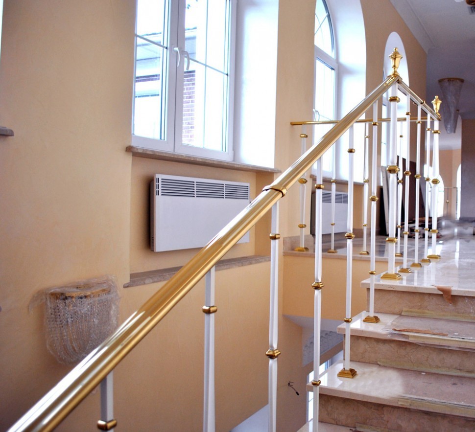 Лестничное ограждение с тремя ригелями и поручнем из латуни