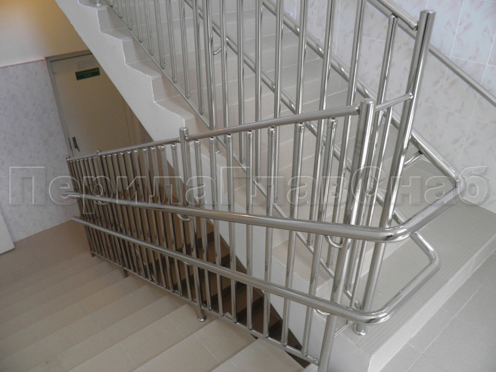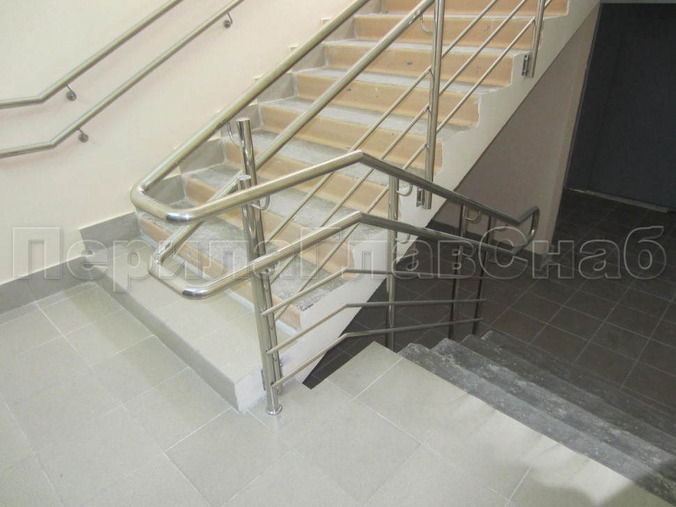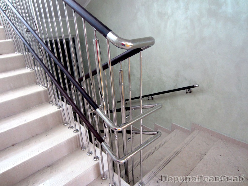 Двойной пристенный поручень из нержавейки в Челябинске. Готовые проекты ПерилаГлавСнаб