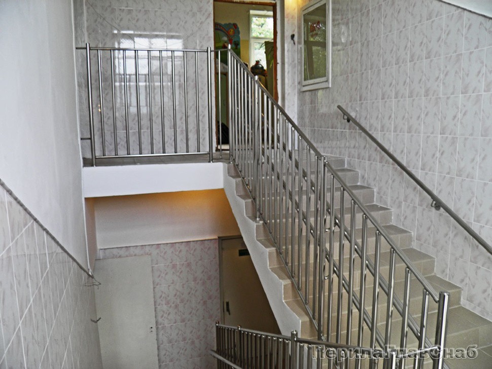 Нержавеющие ограждения для школ и детских садов с вертикальным заполнением “Частокол” - вариант №1 для крыльца