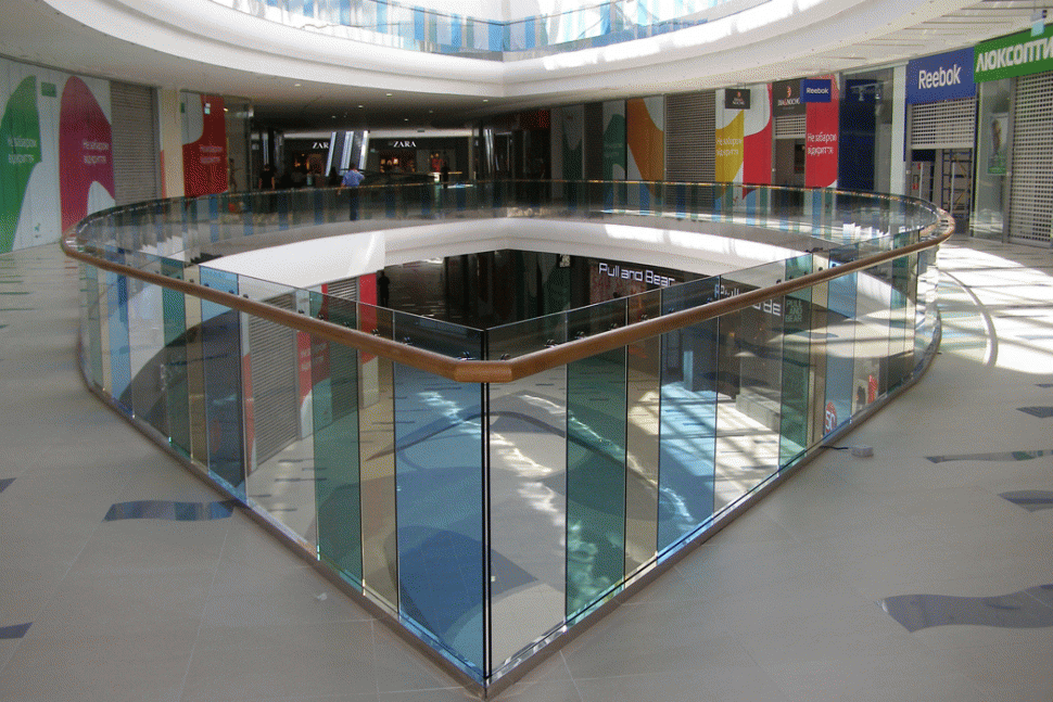 Ограждение с профильным поручнем с пазом на точечном креплении