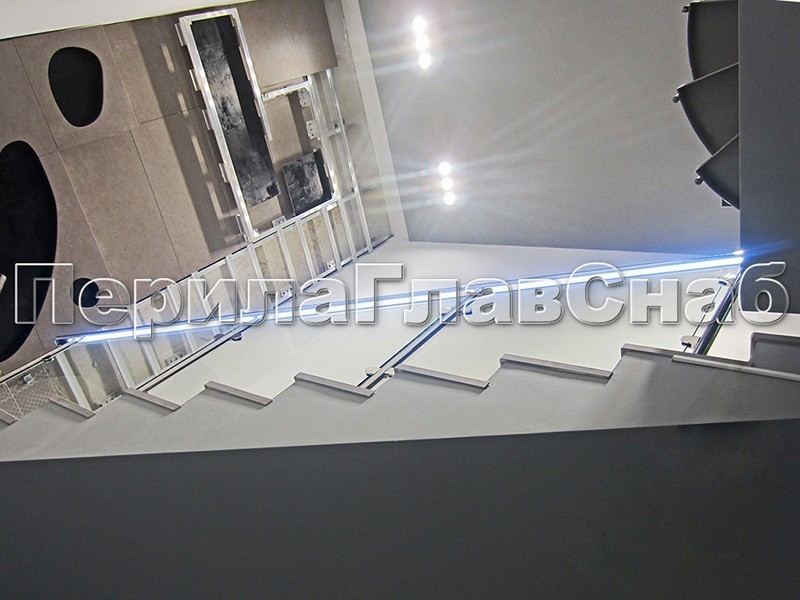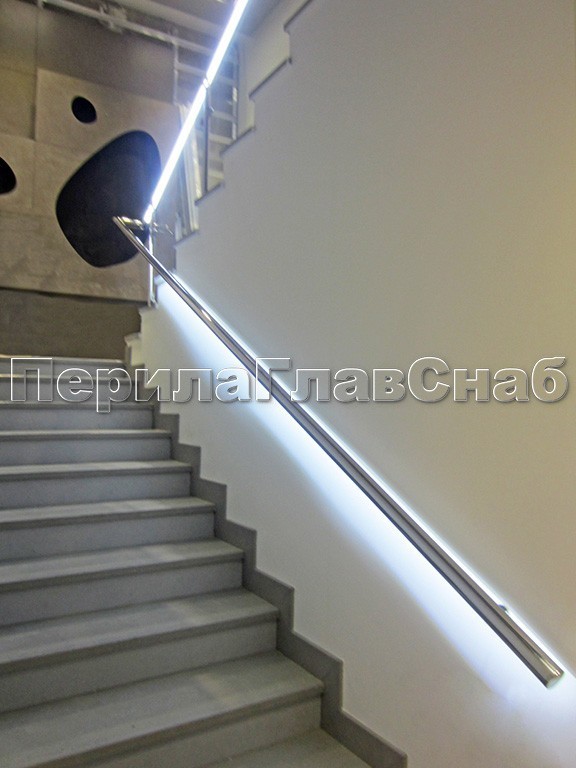 • Поручень труба Ф 42,4мм с пазом и встроенной LED лентой, прерывается на поворотах, окончание поручня заглушка