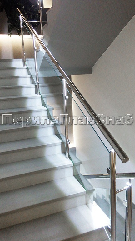 Ограждение для лестницы из нержавейки с зажимными стеклодержателями для крыльца