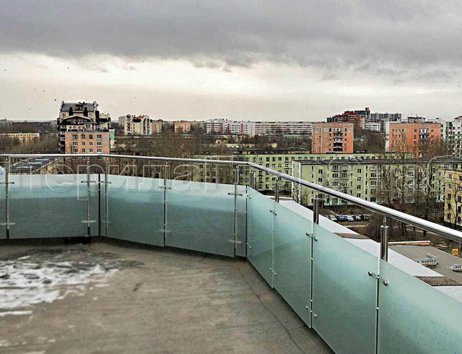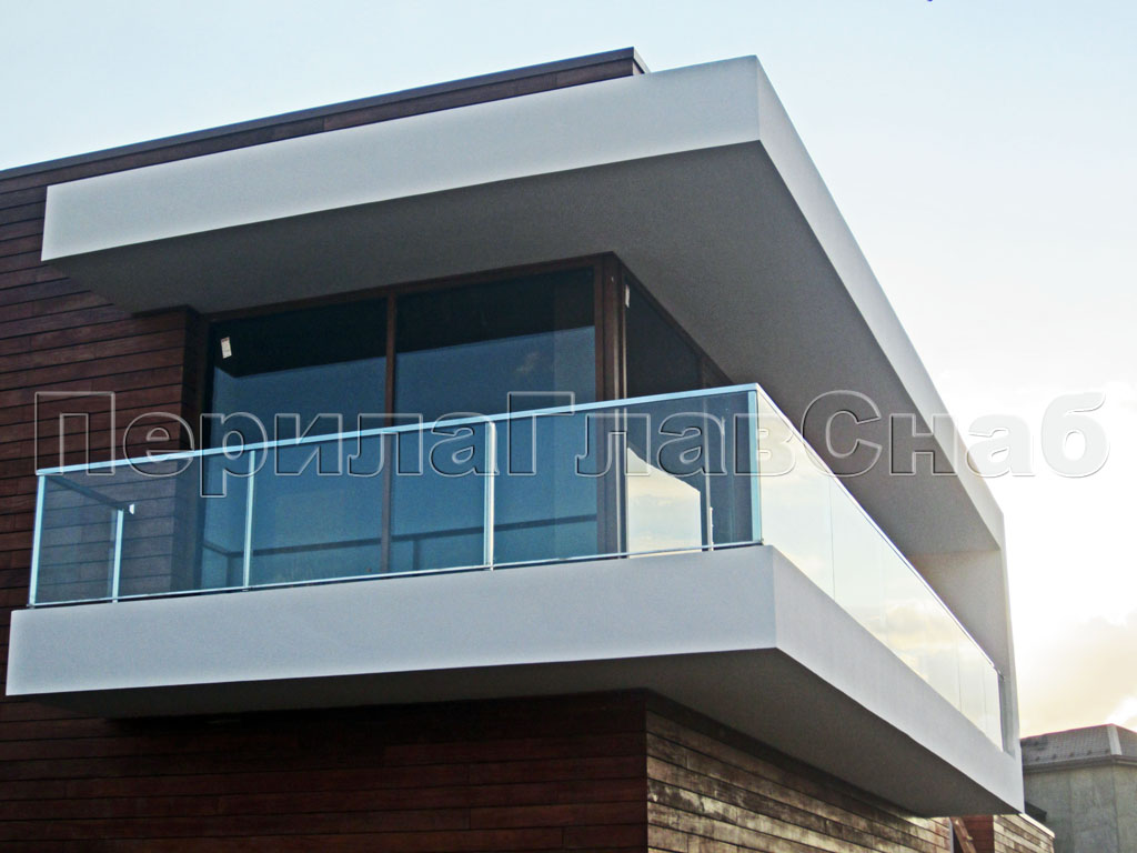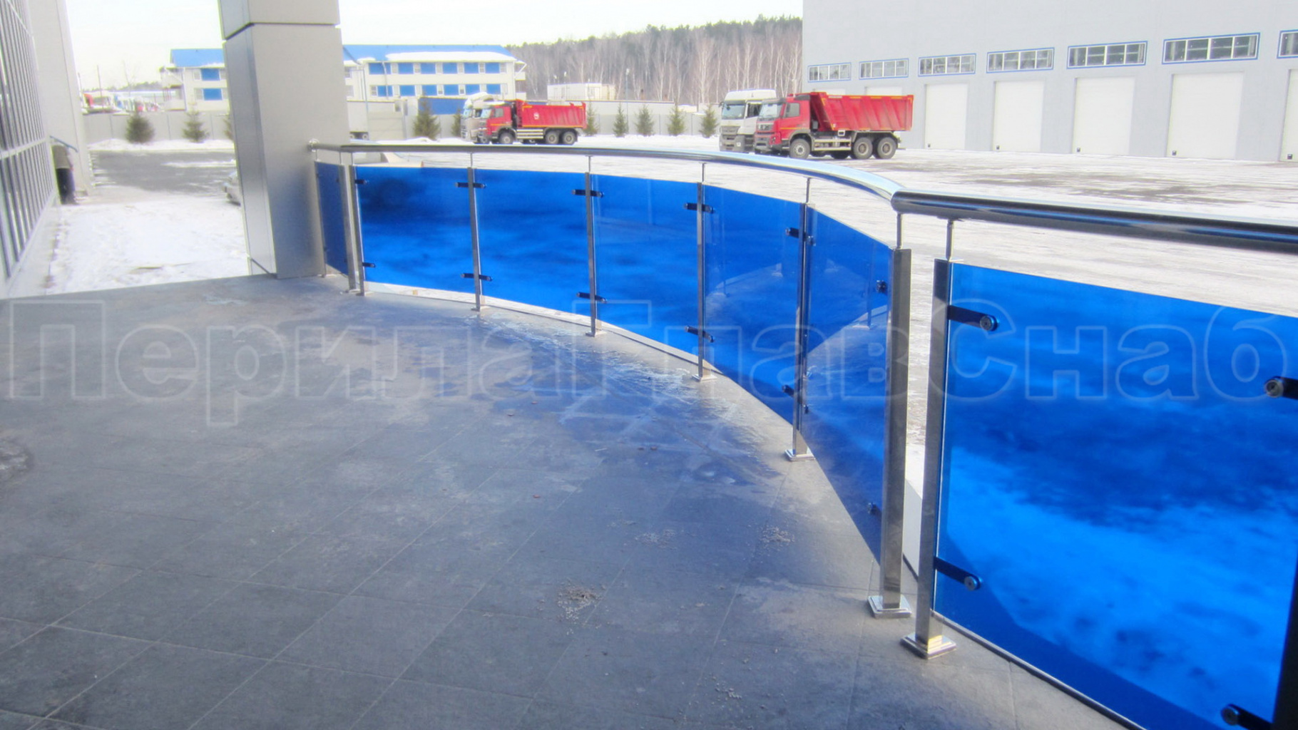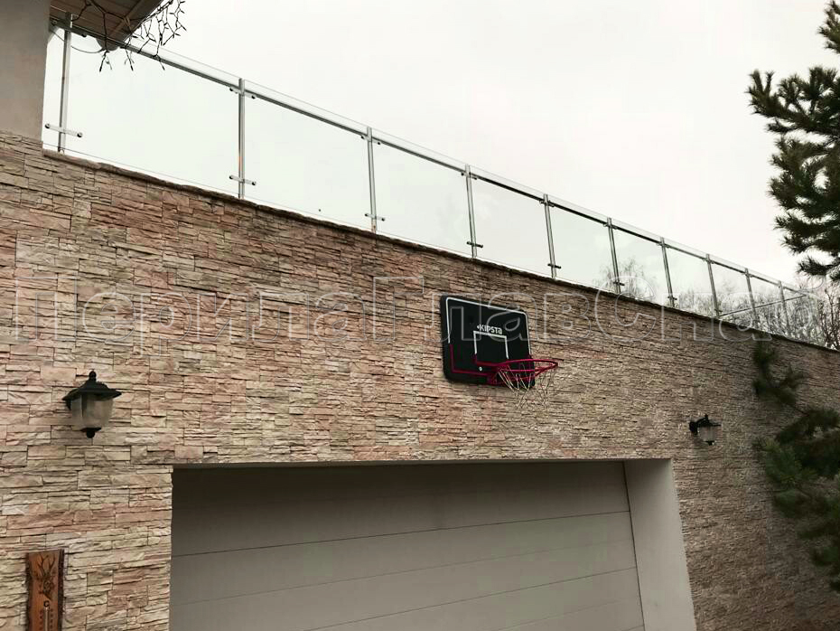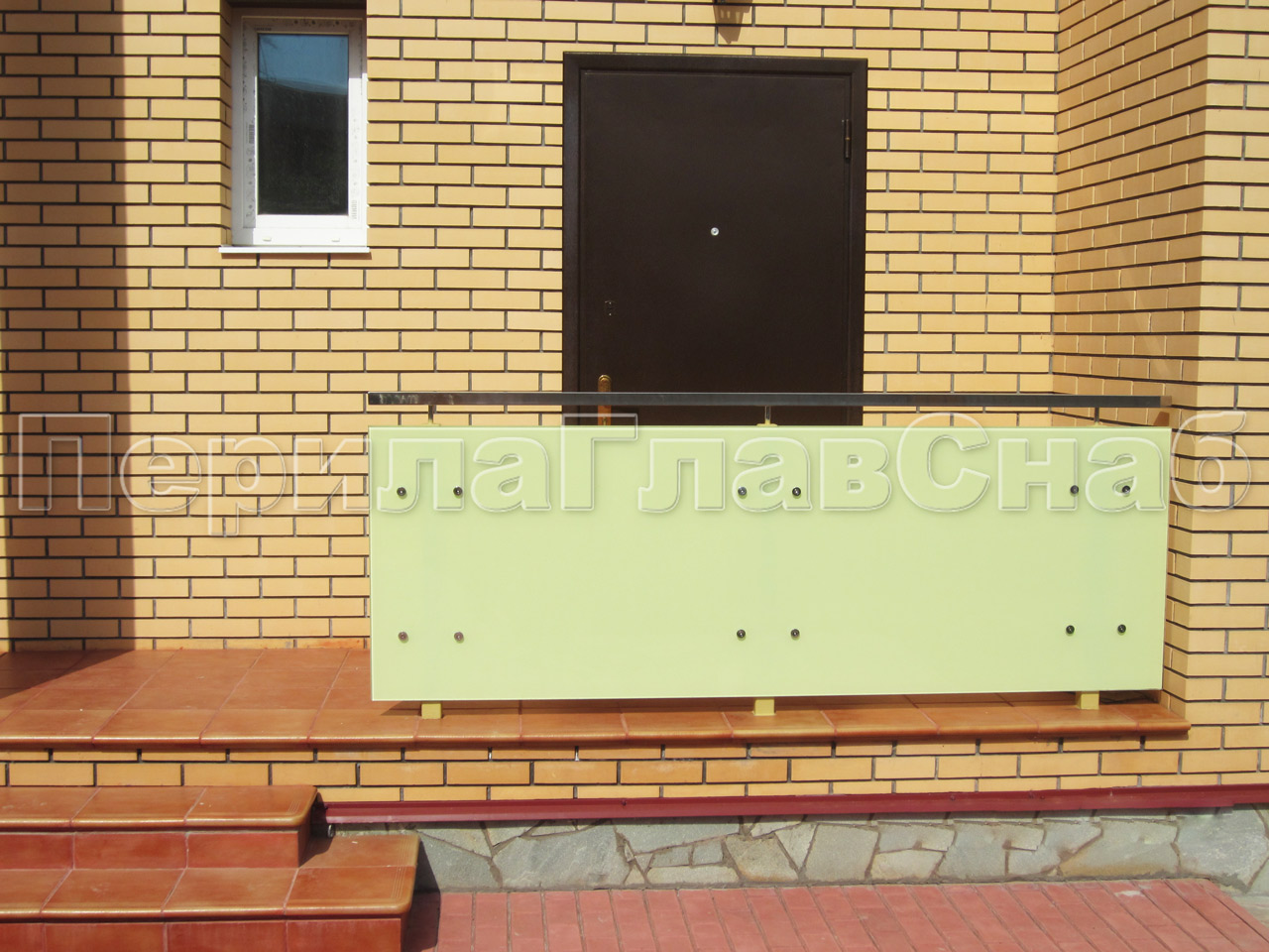 Цельностеклянное ограждение на зажимном алюминиевом профиле для крыльца в Челябинске. Готовые проекты ПерилаГлавСнаб